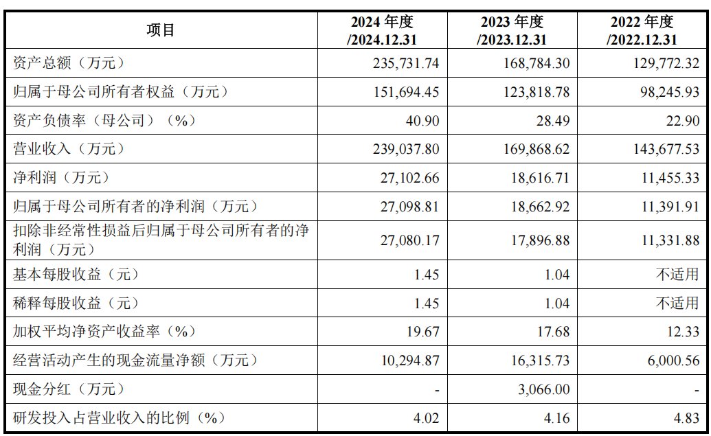 财务方面,于2022年度、2023年度、2024年度,维通利营业收入分别约为14.37亿元、16.99亿元、23.90亿元人民币;同期,净利润分别约为1.15亿元、1.86亿元、2.71亿元人民币。